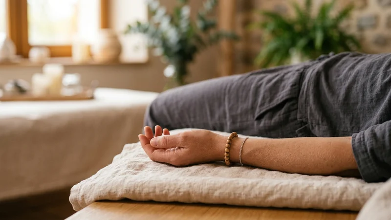 Un environnement dédié renforce la détente. Un coin tranquille. Une température confortable. Une lumière douce. Optionnel mais utile : une bougie, une couverture, un coussin sous la tête.