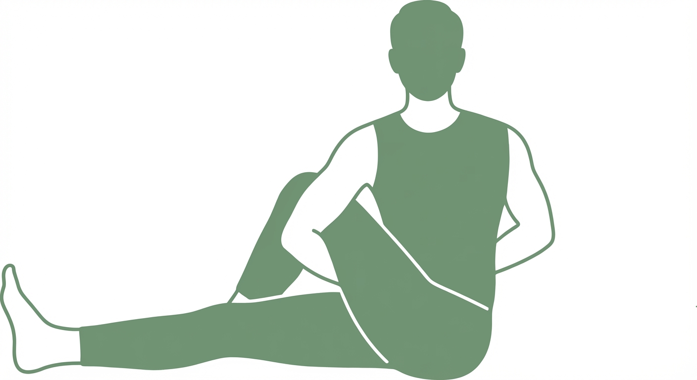 Assis, une jambe tendue et l'autre repliée vers l'intérieur, on effectue une torsion en enlaçant le genou replié avec le bras opposé.